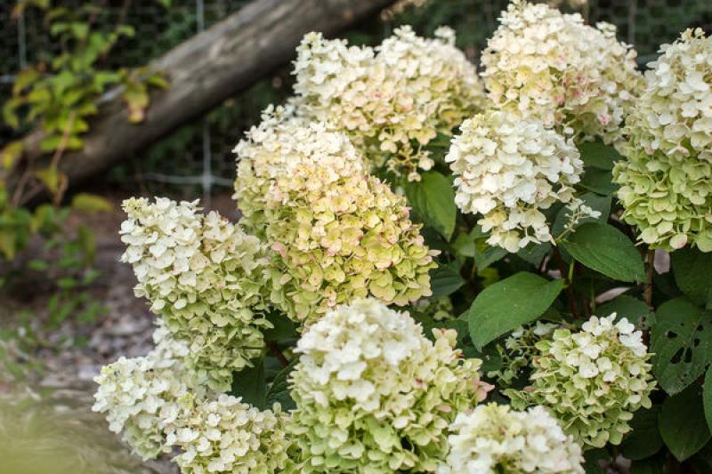 Little Hottie⢠has very full flower heads with florets that emerge green and turn sparkling white. This well-branched, compact panicle hydrangea is covered in large blooms from the bottom to the top of the plant and holds tight flower clusters out on strong stems. With natural basal branching, this new introduction doesn't need much pruning in production or the landscape to grow into a well-shaped plant with strong stems. Fall color is soft pink.