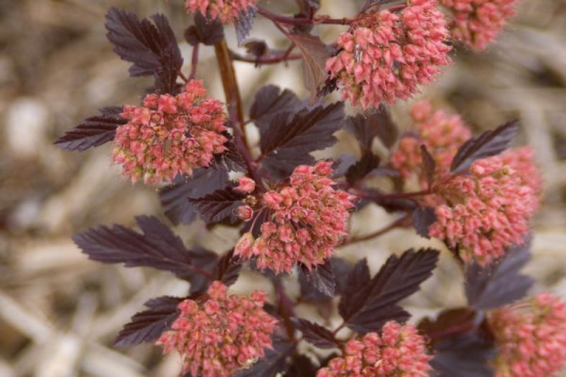 Summer Wine is an easy way to introduce wine-colored foliage into the home garden. It is fast-growing and has few, if any, pest problems. Its graceful, arching habit makes it very appealing in the landscape. It adds beautiful color and vibrancy to your garden, especially in spring. In early June it blooms with white button-like flowers that accent the leaves nicely. Pruning and other maintenance is rarely needed. Use it as a bold accent or part of a mixed border.