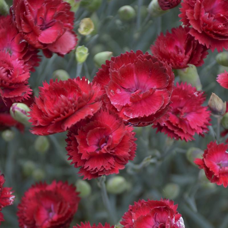 Dramatic, rich red flowers that grab you from a distance. Flowers are held on strong stems above blue-green leaves.