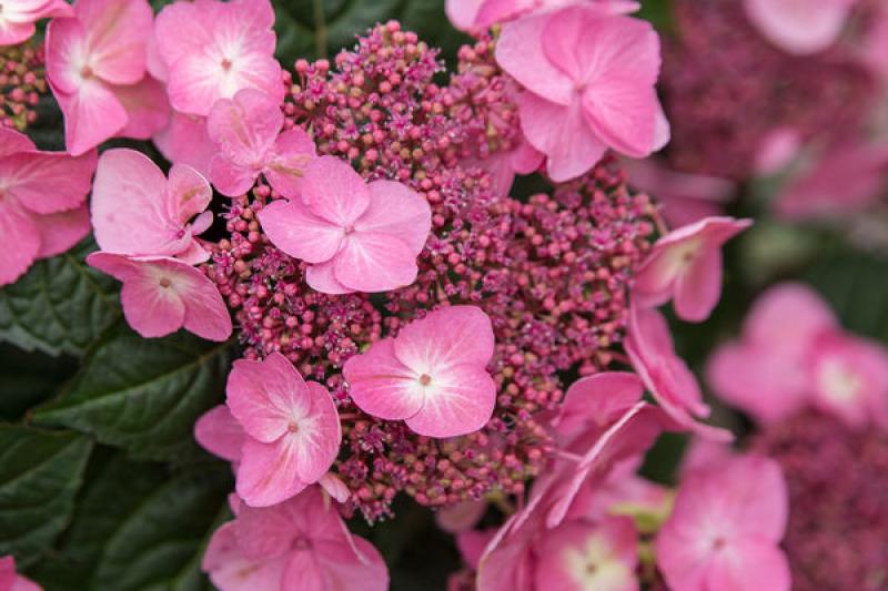 Genetically compact and incredibly floriferous, Pop Star® Hydrangea is a lacecap variety that is a standout in the landscape or decorative container. With strong bud hardiness and reliable rebloom, Pop Star® is a blooming powerhouse. Its short stature makes this a strong border or short hedge plant that doesn’t need pruning to keep its size and is great for year-after-year color on your deck, patio, or porch. The dark green leaves against the blue or pink blooms give the classic hydrangea look, while the lacecap flowers add extra texture and interest to the garden.