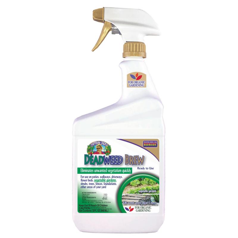 Deadweed brew provides fast-acting control against weeds, grasses, moss and algae. This product is approved for organic gardening. After application, plant damage will be visible from a few hours to 2 days. Area of application is rain fast within 3 hours and will not wash away. Intended for outdoor use on patios, walkways, driveways, foundations, fence lines, and around flower and vegetable gardens. Areas can be replanted as soon as desirable level of weed control is obtained. Reapply every 2-3 weeks as needed. Avoid spraying desirable plants. For full use instructions, please see product label.