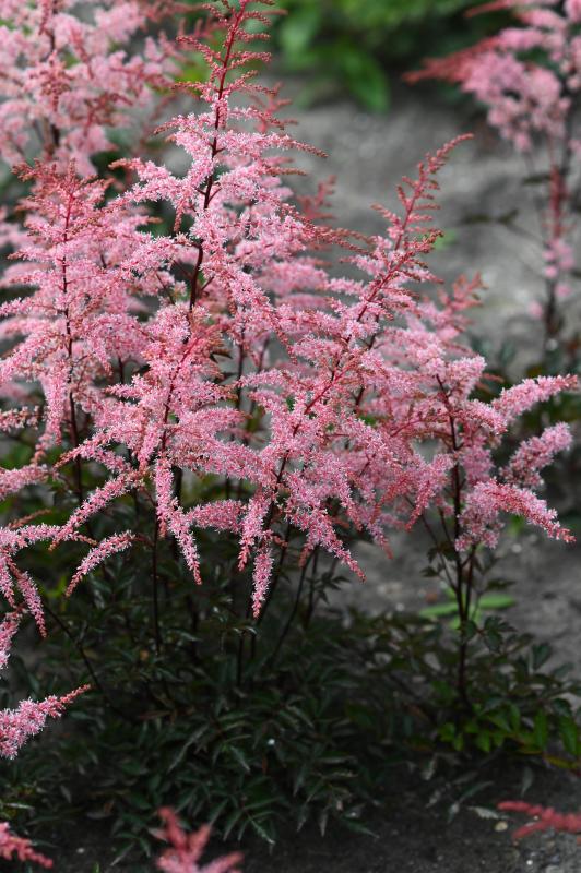 One of the longest blooming Astilbe with over 6 weeks of flowering. Pink flowers contrast beautifully against the dark burgundy foliage.