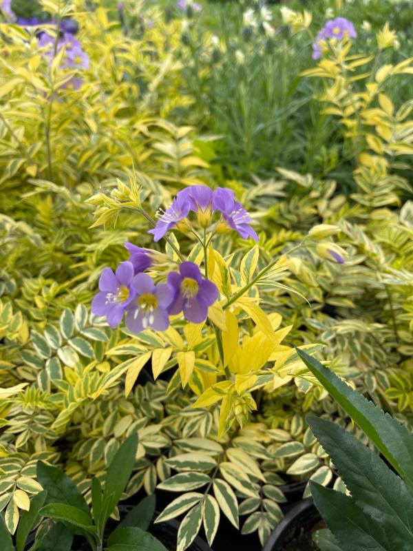 Add showstopping color to the shade garden with this gold and olive green variegated variety. Fragrant clusters of bluish-purple flowers are produced in the late spring to summer months