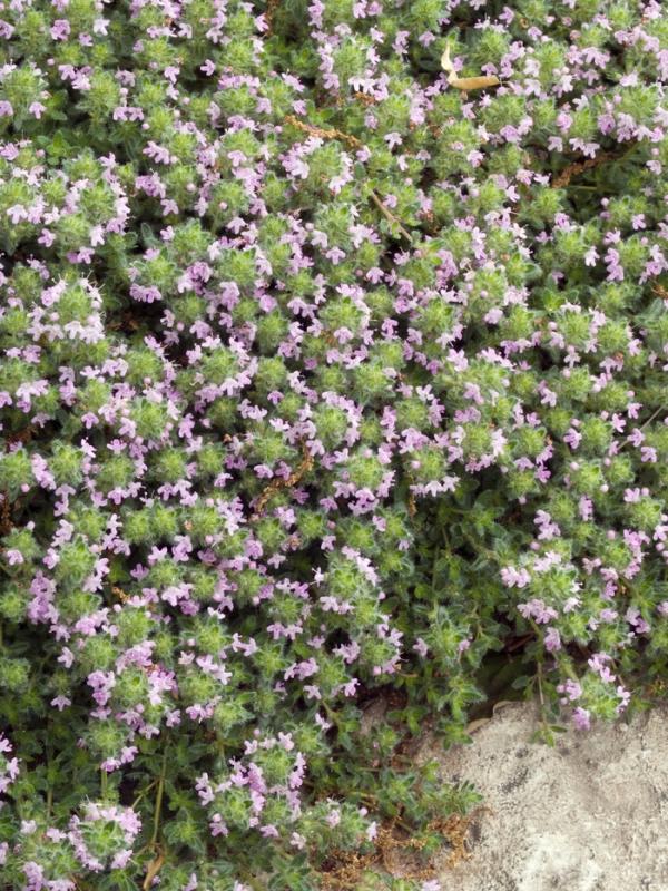 Woolly Thyme is a low care groundcover with fuzzy gray foliage and vigorous spreading stems that root as they spread across the soil. It rarely flowers. An ideal crack filler between flagstone and pavers.