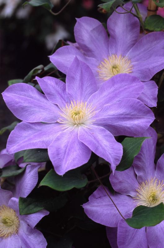 Diana’s Delight has beautiful, rich blue colored flowers with light and dark tones and a creamy yellow center. This lovely clematis has a very free flowering habit