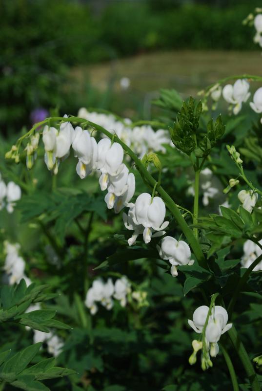 Lovely arching stems with dangling heart- shaped white flowers