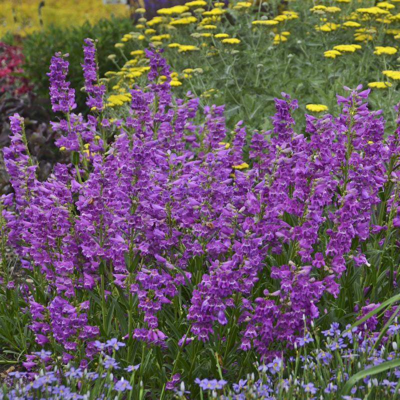 Rose-purple, trumpet-shaped flowers are borne in profusion on thin spikes in early summer. They make a tremendous color statement when planted in groups. Penstemons are very drought tolerant perennials that are easy to grow and are rarely bothered by insects or diseases.