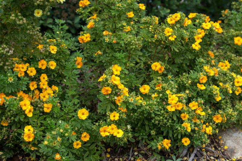 An intense shade of orange, this double flowered form adds to the 1-2-3 punch of our other potentilla cultivars in First Editions®. Very tight habit with dark green foliage, it blooms from early summer through fall and handles tough conditions. Deer resistant.