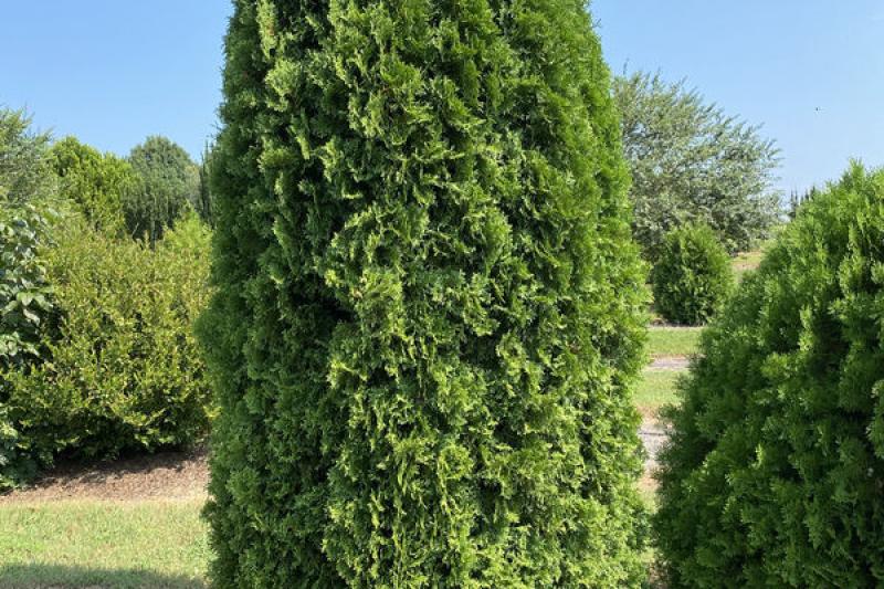 A moderate to fast growing upright, columnar evergreen that won't split apart. Resistant to disease and winter burn. Use to create hedges or screens, or to anchor the landscape with some vertical appeal year round.