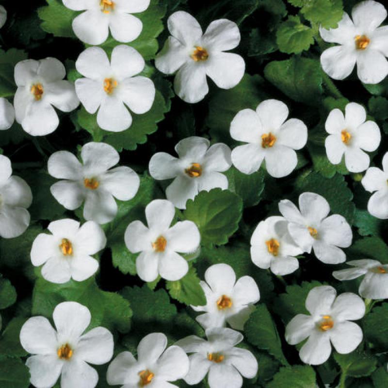 White flowers appear all season; strongly trailing plants; low maintenance; perfect filler plant in combinations