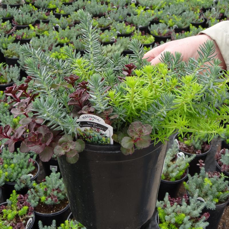 Colorful groundcover. Trio of Angelina, Blue Spruce & Voodoo all in one plug! Great for mass planting or for mixed garden containers.