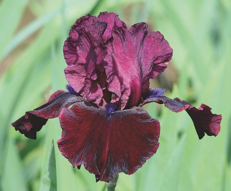 Early, very large mahogany-red standards and falls with hints of gold. The dark red blooms have a velvety appearance and are held on tall stems