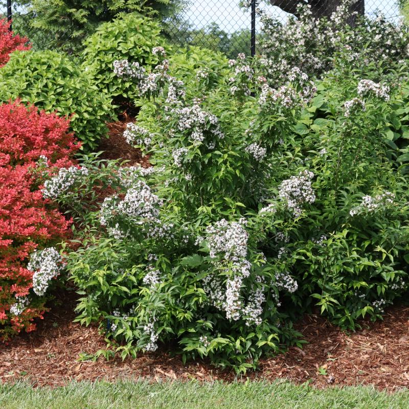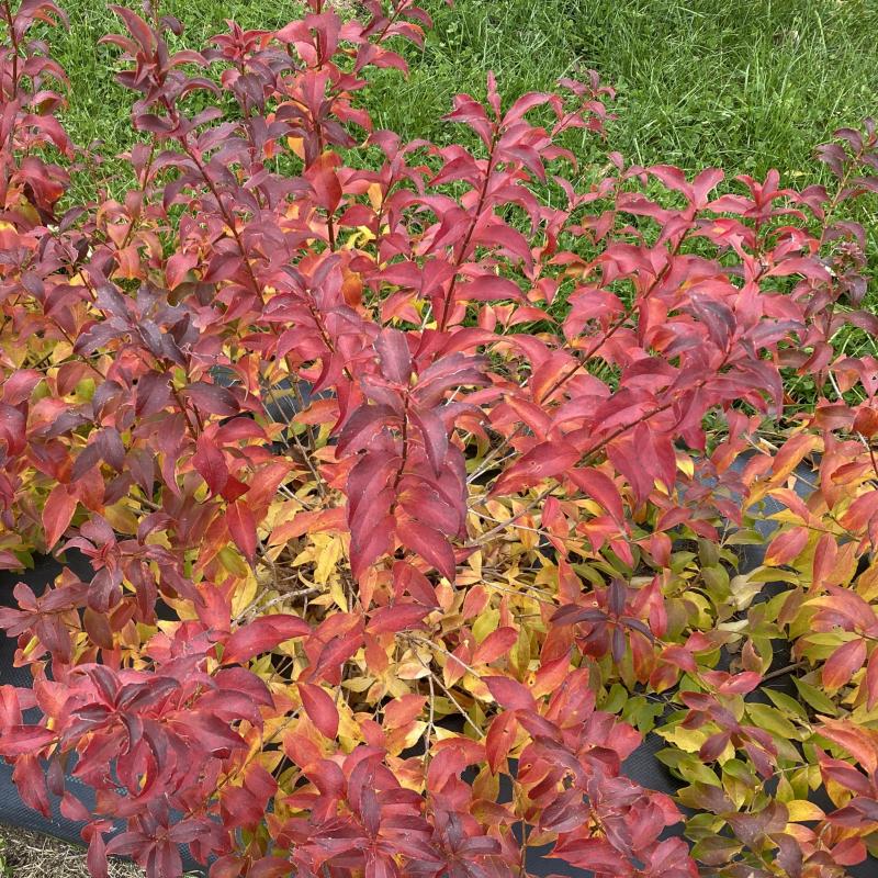Sweet Emotion Blaze abelia provides a double dose of beauty in your growing season. It starts in spring when it bursts with fragrant pink blooms. These plentiful little flowers attract pollinators for weeks. Then, in fall, its foliage transforms into a stunning display of yellow, orange, and red hues. If pruning is desired, shape immediately after flowering.