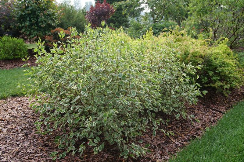 Refreshing bright green and cream, with hints of pale pink on the margins. The second is in fall when the whole plant erupts into a fabulous burgundy and hot pink duo. Even the stems are burgundy! With its large size, it makes a great anchor for the garden.