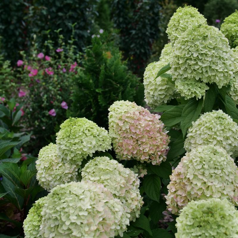Powerball panicle hydrangea features large, nearly round blooms with densely packed florets. Flowers emerge lime green, transition to white, and mature to soft pinks in fall. This easy-to-care-for shrub thrives in the middle of the border or even in containers wherever you need some powerful beauty!