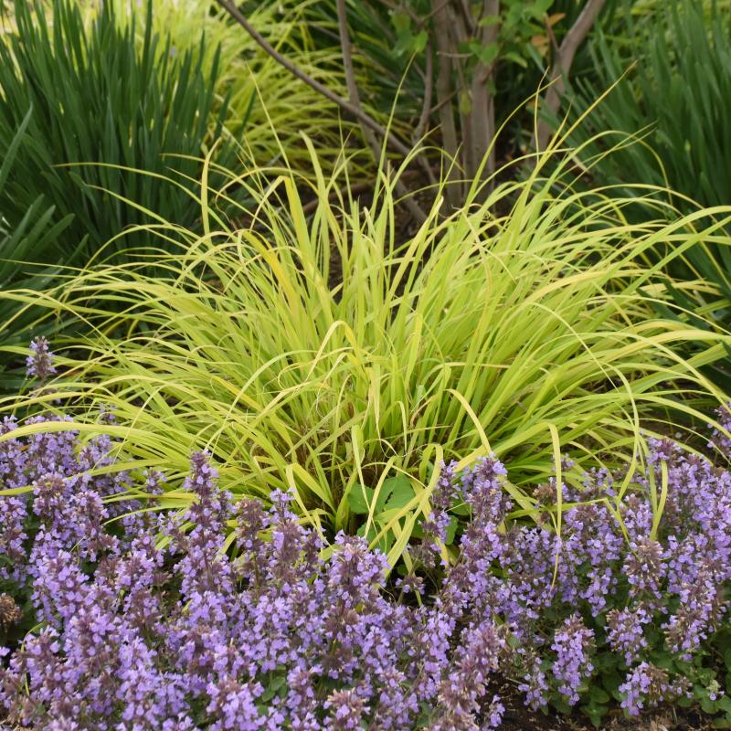 A brilliantly colored ornamental grass that’s perfect for contrast in your sun garden. ‘Lemon Squeeze’ behaves like other Fountain Grass but boasts chartreuse gold leaves. One of the best for vigor that we’ve seen in gold-leafed Pennisetum with absolutely no burning in the sun. Copper panicles appear above the foliage in midsummer and provide additional interest to this three seasons grass.