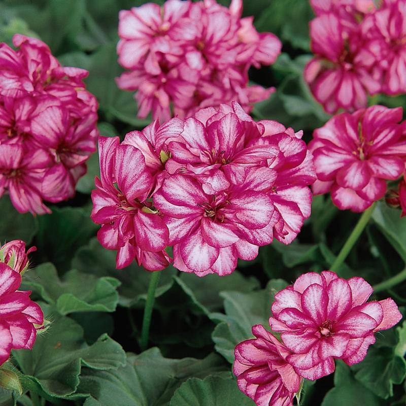 A compact ivy geranium with stunning semi-double flower heads. High heat and drought tolerant. Its excellent branching habit is great for hanging baskets and mixed sun planters.