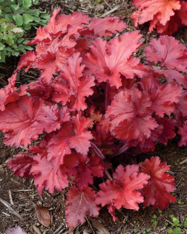 Vigorous fast-growing variety that has the reddest leaves-ever! Foliage is somewhat ruffled with white flowers on red stems appearing in midsummer. Color is best in the spring and fall when temperatures are cooler.