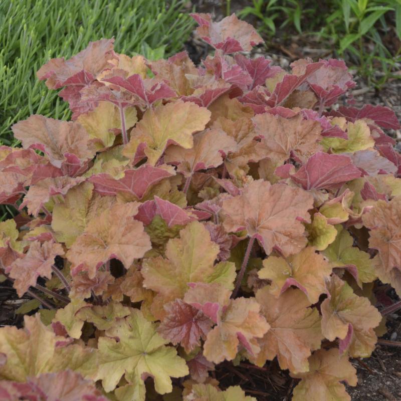 'Caramel' has golden-orange leaves turning a bit more apricot with warmer weather. Foliage is fuzzy giving the plants a more frosted look. Plants are very heat and humidity tolerant; a vigorous grower.