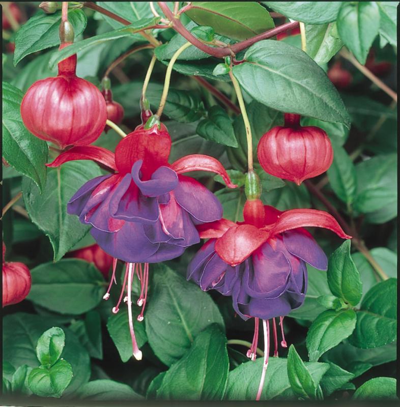 Pink sepals over blue double corollas bloom spring to fall - Deadheading Not Necessary