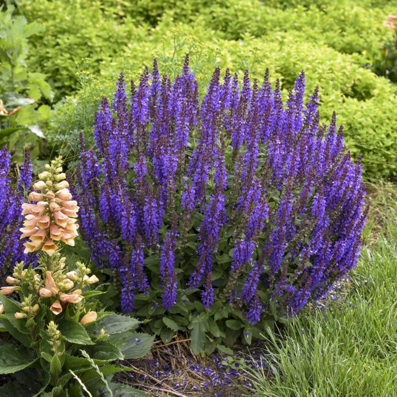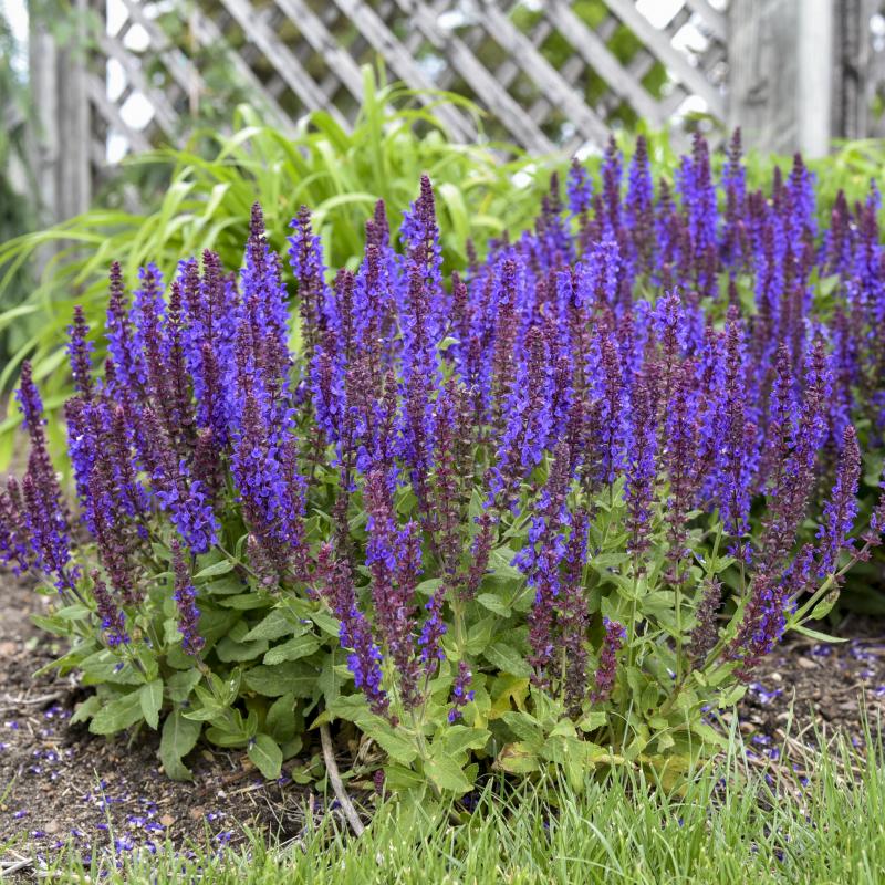 Sheer back the spent flowers and enjoy again throughout the summer. Violet blue flowers are held on rosy purple calyxes on a perfectly rounded, dense and beautiful habit. This shorter stature Salvia will tuck in nicely to all sorts of places in your perennial garden, planted en mass makes a perfect edger. Salvia is a staple item for every sunny garden. It asks little more than sunshine and a little drink every once in a while in return for producing a bountiful mass of colorful flower spires from late spring into early summer.