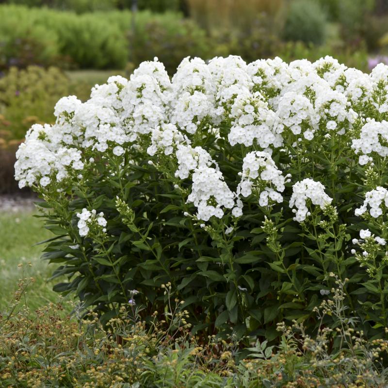 Pure white flowers are produced in well-defined panicles at the top of a perfect habit. The dark green leaves resist mildew that often plagues Tall Garden Phlox, even in hot, humid conditions. Try this with other white-flowering plants to create a moonlight garden. Be sure to locate these plants in full sun for the best flowering performance and to help avoid powdery mildew concerns. A favorite of pollinators.