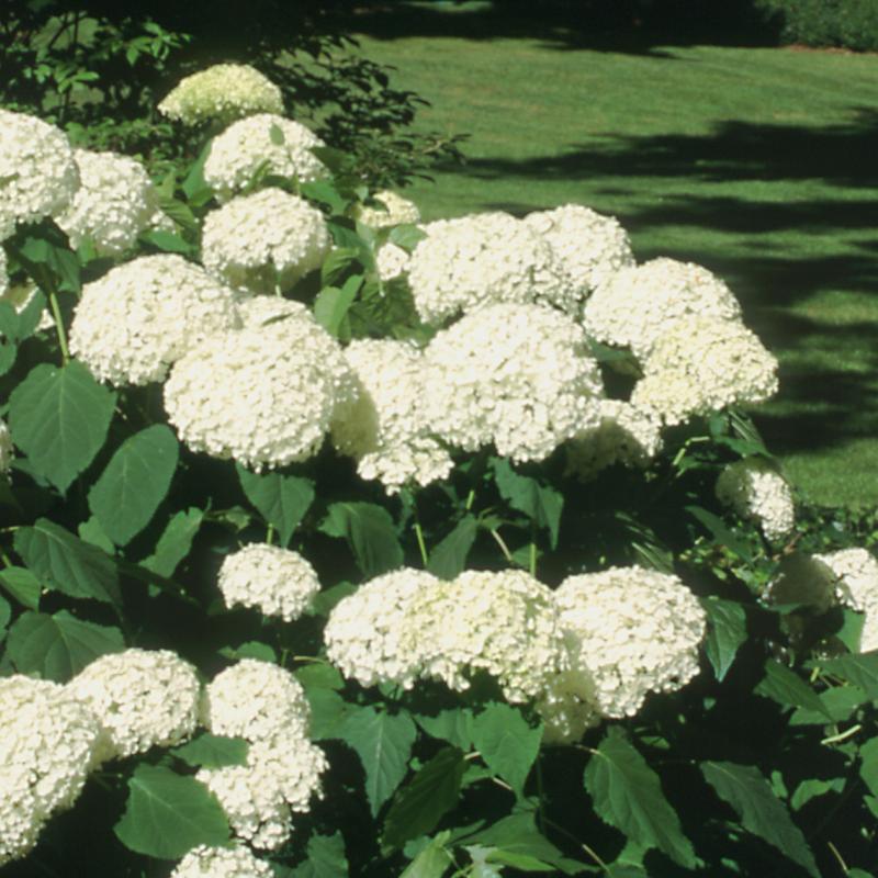 | Stunning pure white flowers, much larger than others of the species - up to 12 inches across! Blooms appear in late spring to summer, often continuing into fall. Strong, straight stems hold the huge flower heads up well, despite heavy rain. This full, lush shrub needs plenty of room to show off its spectacular beauty. Deciduous. Rarely to never fed on by Japanese Beetles. |